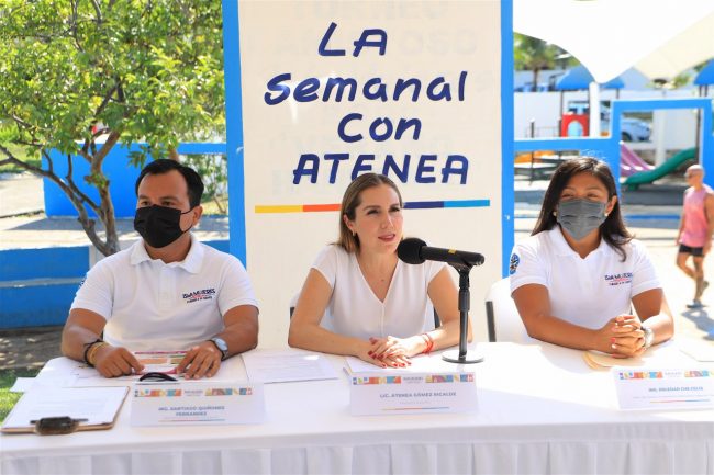 Atenea Gómez Ricalde da banderazo de rehabilitación de la caseta de policía del parque de La Gloria en Isla Mujeres