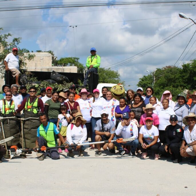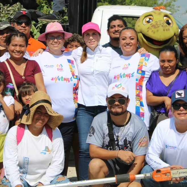 ISLA MUJERES, 02 de julio de 2023.- Un total de 80 personas, entre colaboradores del Centro Comuntario de la Zona Continental de Isla Mujeres, vecinos de la colonia La Victoria y voluntarios, participaron junto con la presidenta municipal Atenea Gómez Ricalde, en un Limpiatón.