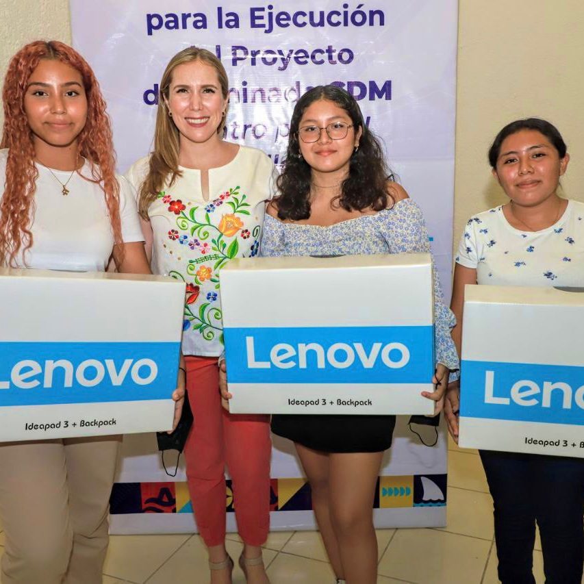 También resultaron beneficiados con computadoras Wendy Montserrat Cazares San Juan, quien sobresalió por su excelencia académica al obtener un promedio de 10; Diana Isabel Góngora Fernández con 9.7 y Geraldine Montserrat Hernández Pech con 9.8, quienes obtuvieron dichos promedios entre más de 600 alumnos y alumnas de la Generación 2019-2022 del Colegio de Bachilleres de Ciudad Mujeres que se ubica en la zona continental de la ínsula.