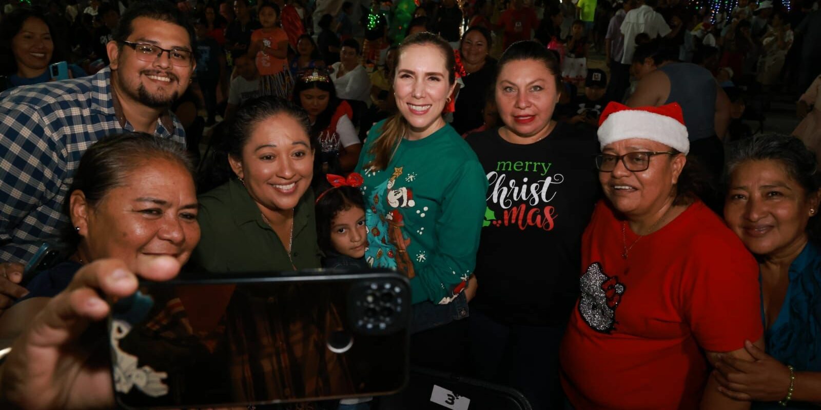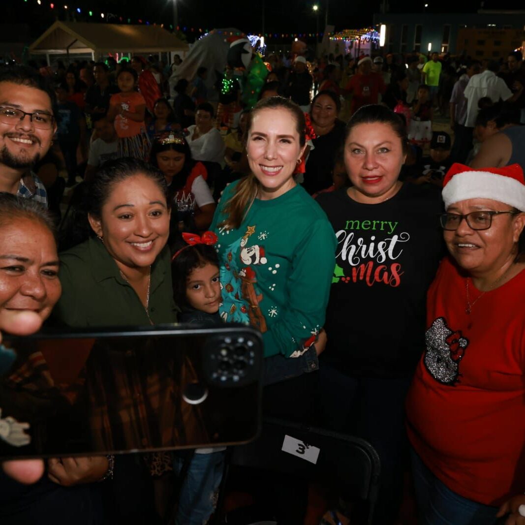 Acompañada por cientos de familias, la Presidenta Municipal, Atenea Gómez Ricalde, recorrió con entusiasmo tres villas navideñas y el trineo de Santa, donde resaltó la importancia de fortalecer el tejido social y promover la integración familiar en la comunidad isleña.