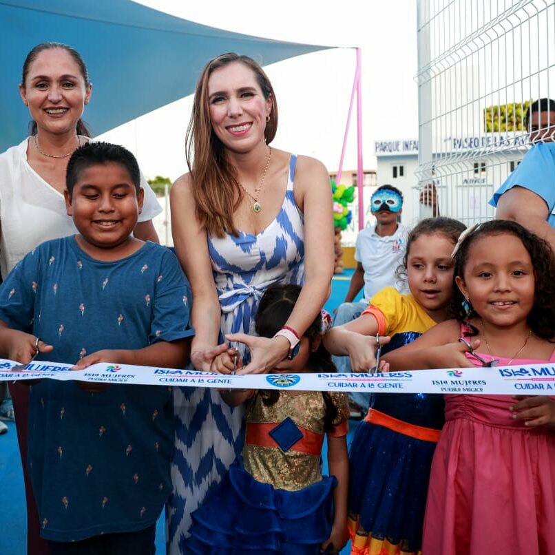 Isla Mujeres, Quintana Roo, 30 de junio de 2023.- Acompañada por las niñas y niños de Isla Mujeres, la presidenta municipal de Isla Mujeres, Atenea Gómez Ricalde, inauguró el parque infantil «Paseo de las Aves» en la colonia «La Gloria» de la Zona Insular.