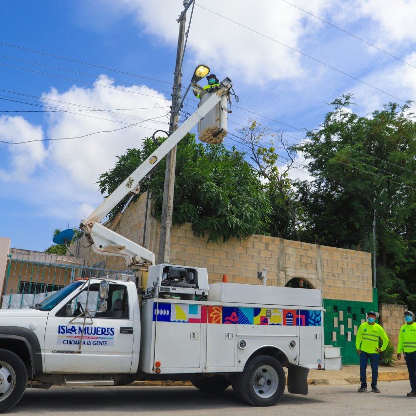 Isla Mujeres, Quintana Roo, 22 de agosto de 2022.- Para la presidenta municipal de Isla Mujeres, Atenea Gómez Ricalde, cuidar a la gente y reforzar su seguridad es una prioridad, por ello avanzan los trabajos de alumbrado público en la zona continental de la isla.