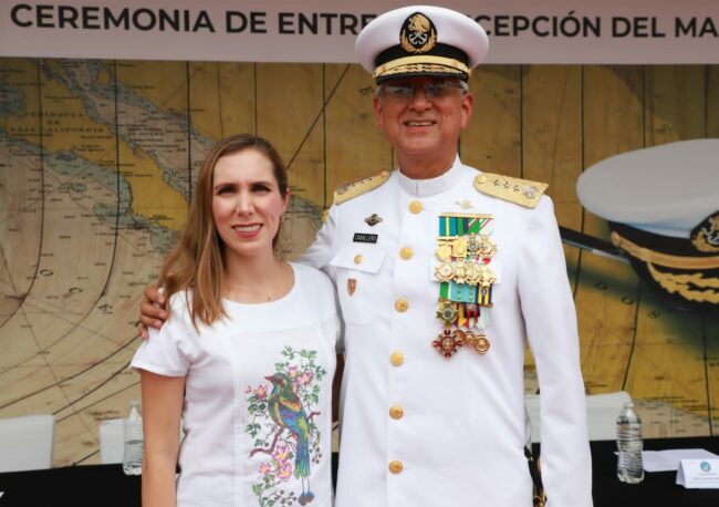 Atenea Gómez atestigua la toma de posesión del nuevo comandante de la Novena Región Naval