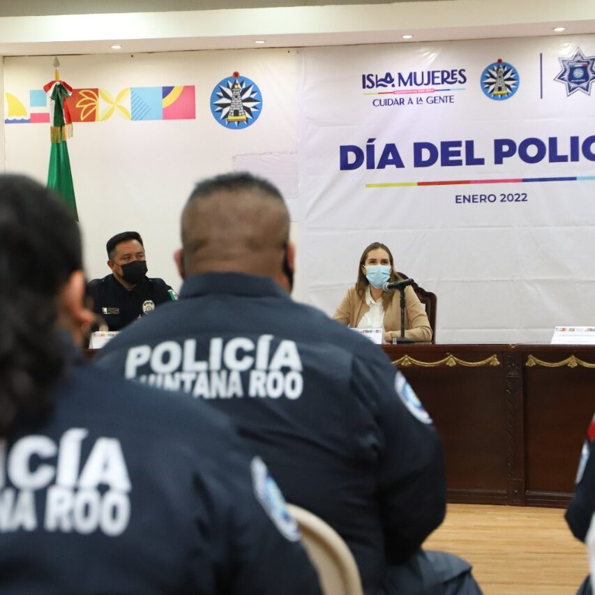 “Reconozco a las y los policías de Isla Mujeres, quienes son parte fundamental en el esfuerzo que hace el gobierno por mantener la paz y la seguridad de las familias isleñas y de las y los turistas que nos visitan, los exhorto a redoblar esfuerzos y a cumplir con honor y dedicación su deber”, comentó la alcaldesa en su mensaje a los uniformados.