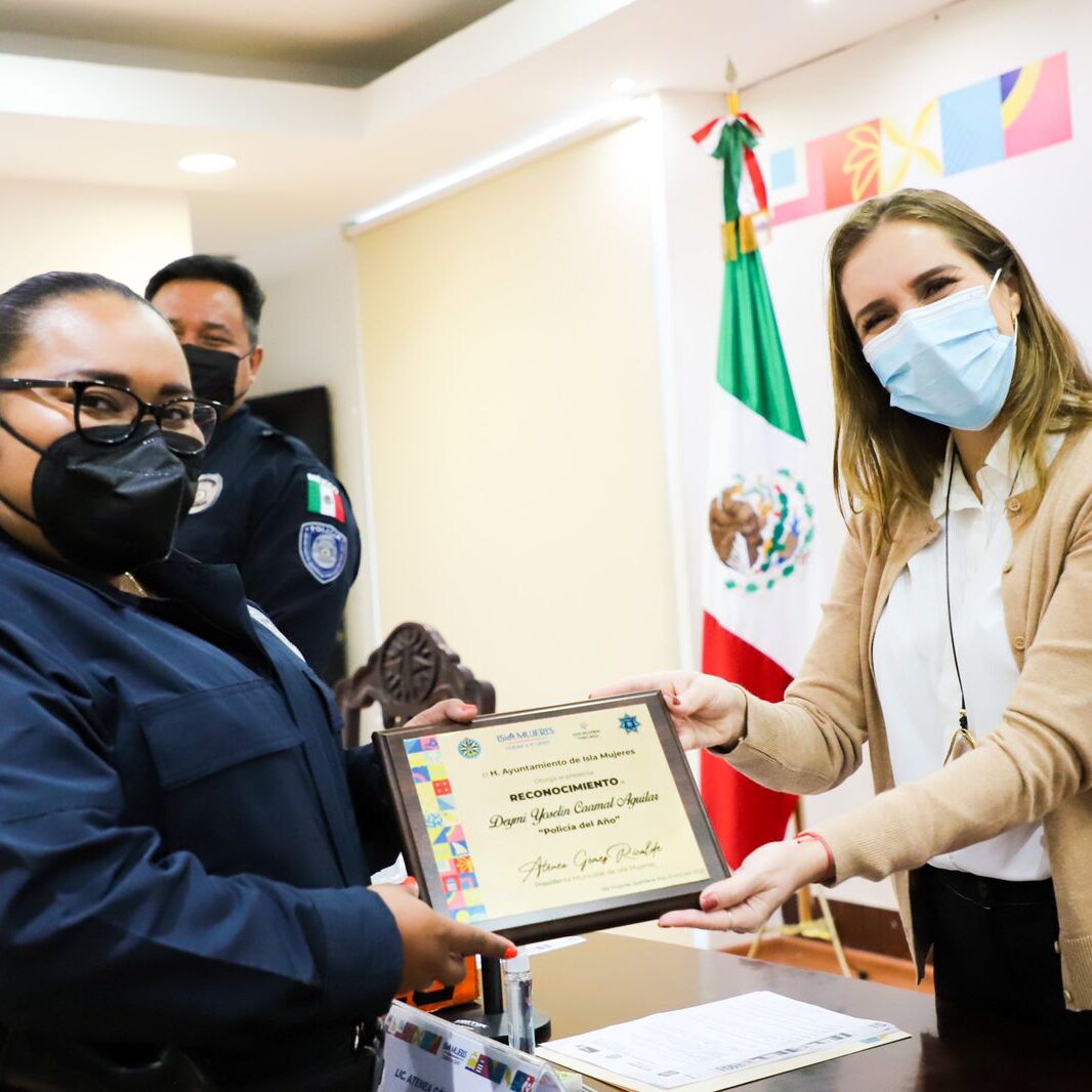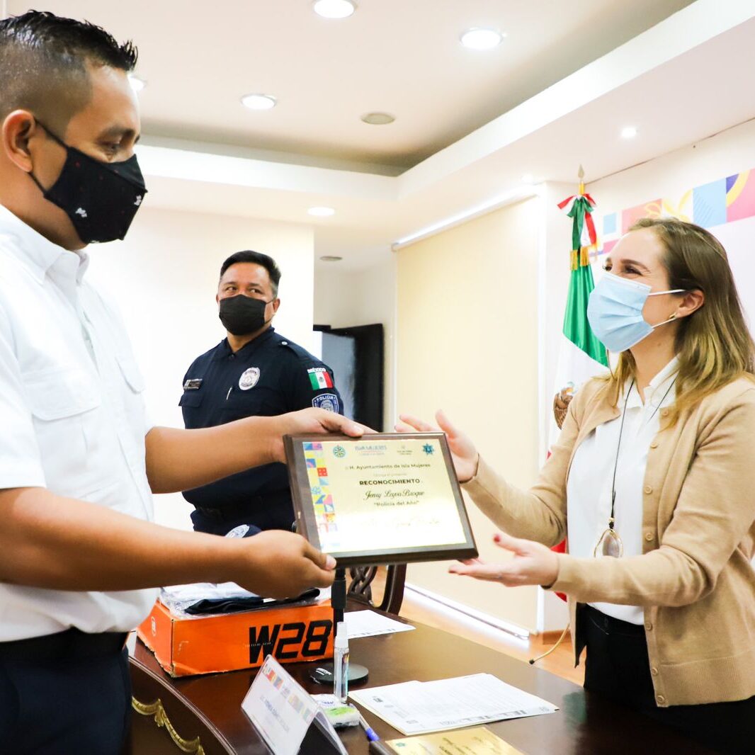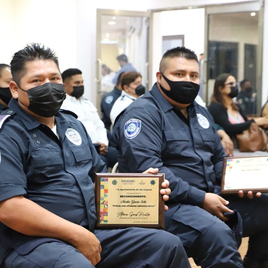 Los policías quienes recibieron reconocimiento por votación directa de sus compañeros fueron como policías destacados, Janet Gerónimo Hernández y José Moreno López; policía eficiente, Nicolás García Solís; policía veterano, Bertha Noemí Pech Garrido y policías del año, Jenry Leyva Broque y Deymi Yoselin Caamal Aguilar.