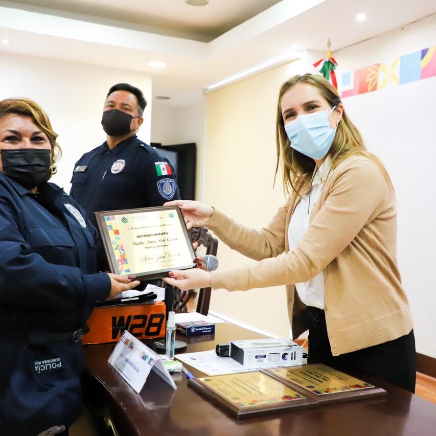 En total, la alcaldesa entregó 160 kits de uniformes que contienen camisola de manga larga y manga corta, pantalón pie tierra y táctico, para los oficiales de Tránsito, personal administrativo y trámites y servicios. Entre los reconocimientos entregados en lo individual destacan el policía del año, el más destacado, el más eficiente y el más veterano.