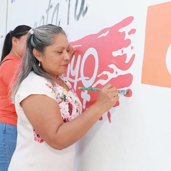 Como cierre de estas actividades, la Instancia Municipal de la Mujer llevó a cabo la pintura de una barda en el marco de la campaña «Conecta tu Red de Apoyo», perteneciente al programa nacional «Somos tu Red de Apoyo» de la CONAVIM.