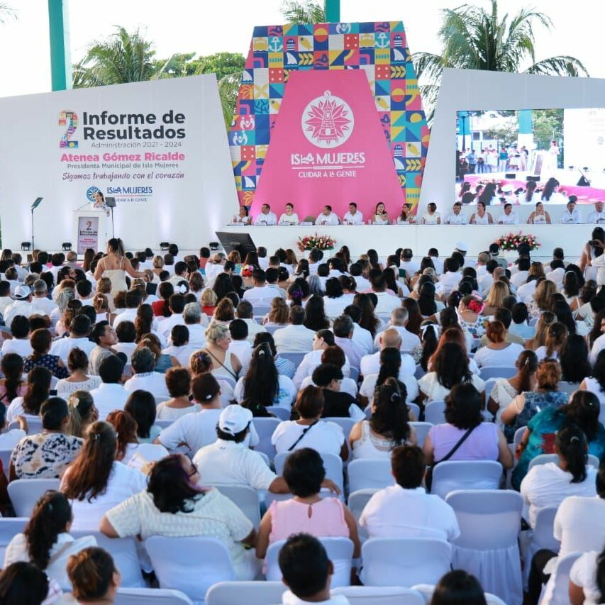 Isla Mujeres, Quintana Roo a 20 de septiembre.- En un logro sin precedentes, el Gobierno Municipal de Isla Mujeres, encabezado por la Presidenta Municipal, Atenea Gómez Ricalde, ha destinado un presupuesto histórico en obra pública en beneficio de las familias isleñas, se destacó durante el Segundo Informe de Resultados, que encabezó la Gobernadora de Quintana Roo, Mara Lezama Espinosa.