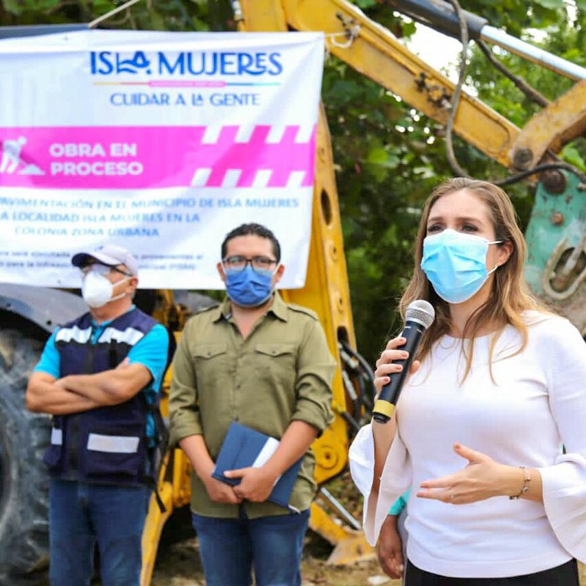 (Isla Mujeres, Quintana Roo a 30 de noviembre de 2021).- Con el compromiso de seguir impulsando el desarrollo ordenado y responsable de Ciudad Mujeres, la presidente municipal de Isla Mujeres, Atenea Gómez Ricalde, dio el banderazo de inicio de obra, de la construcción de vialidades, guarniciones y banquetas en el Centro Urbano y complemento de vialidades en la colonia San Antonio en la Zona Continental.