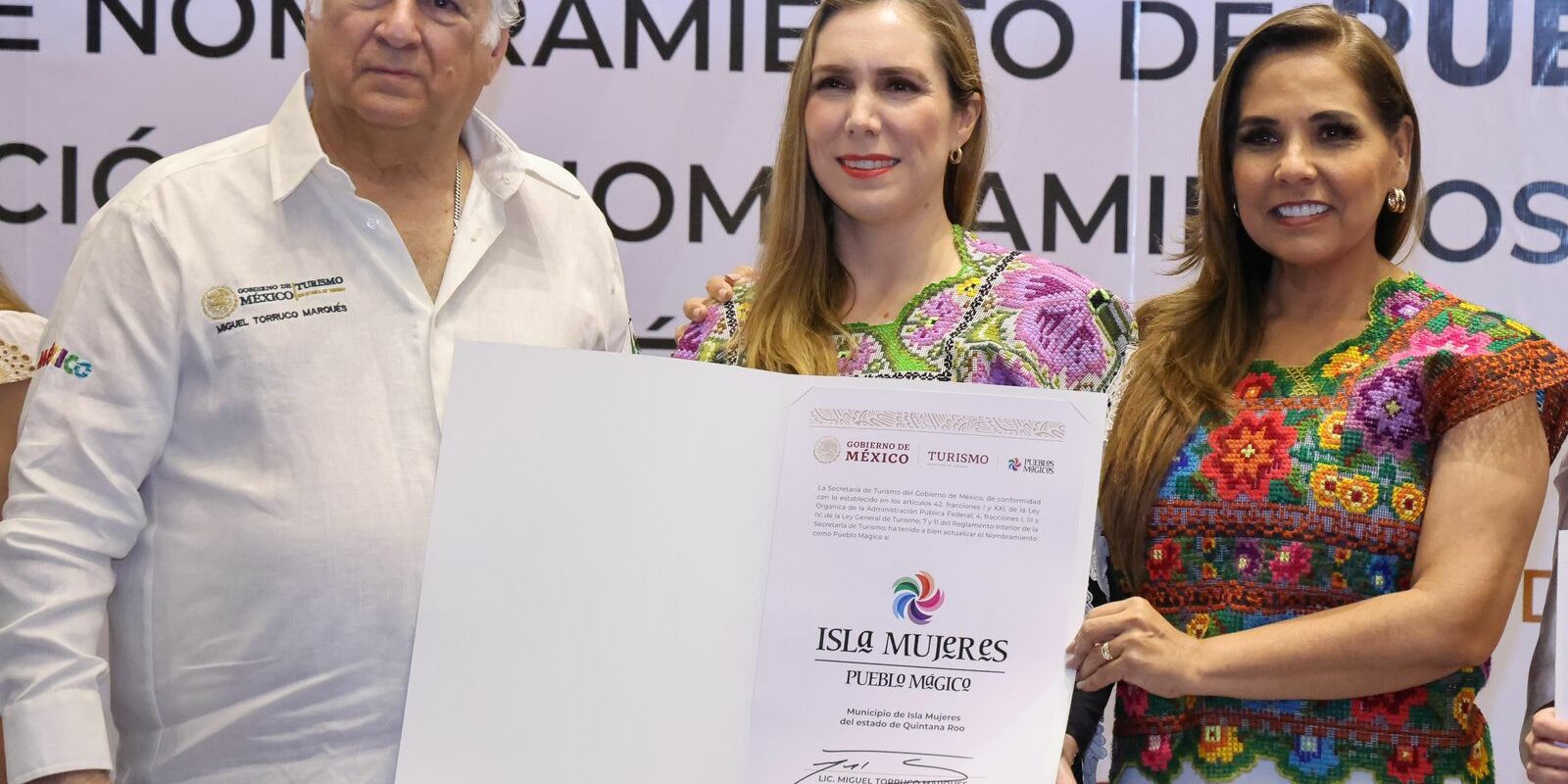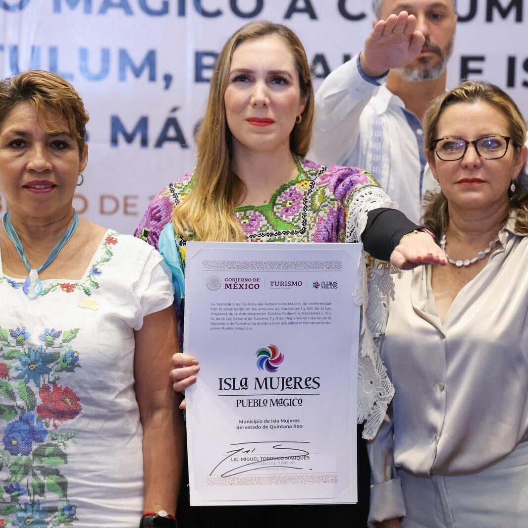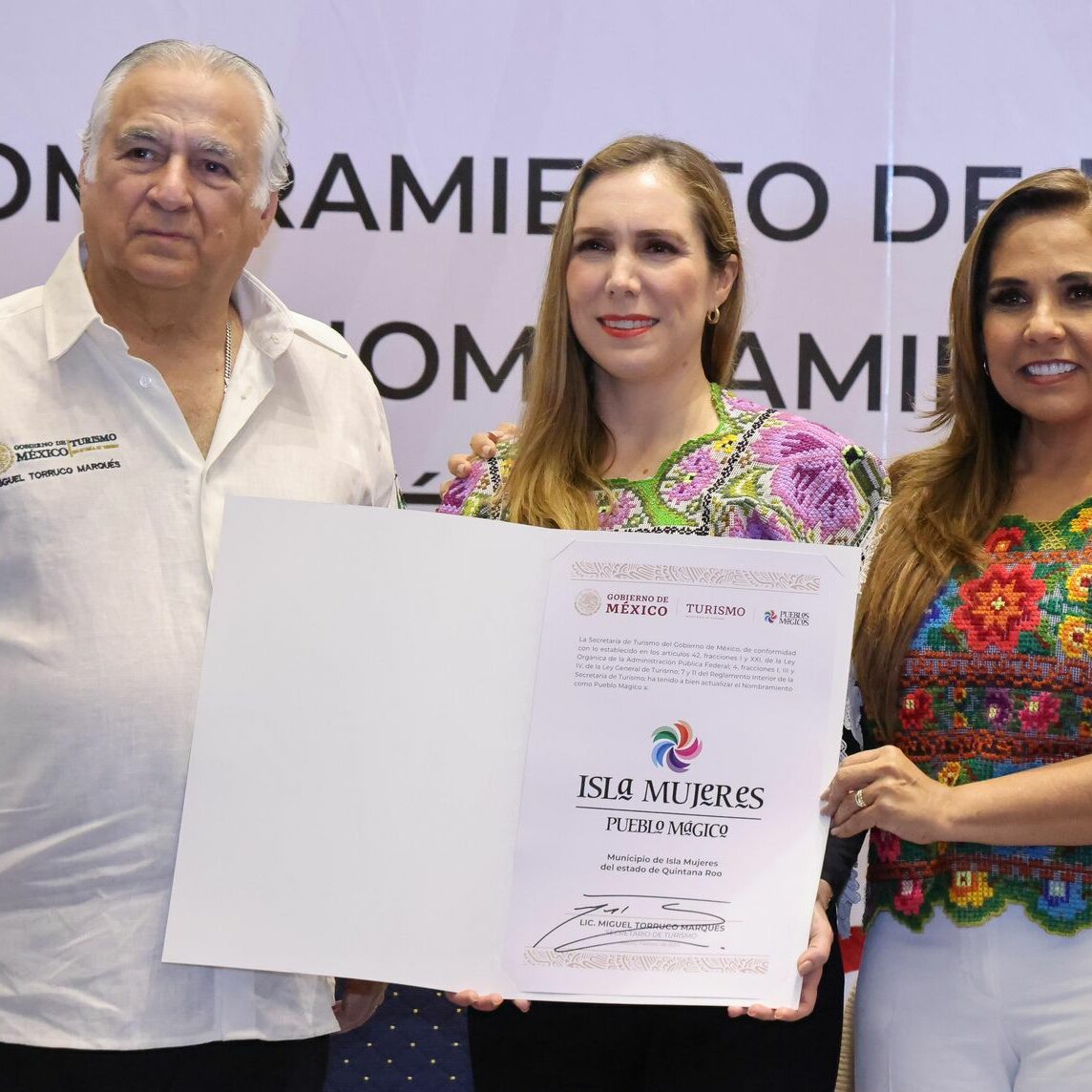 Isla Mujeres, Quintana Roo a 16 de febrero de 2024.- El Gobierno Municipal de Isla Mujeres recibió con orgullo la ratificación de su estatus como Pueblo Mágico, distinción entregada por el Secretario de Turismo (Sectur), Miguel Torruco, y la Gobernadora de Quintana Roo, Mara Lezama Espinosa.