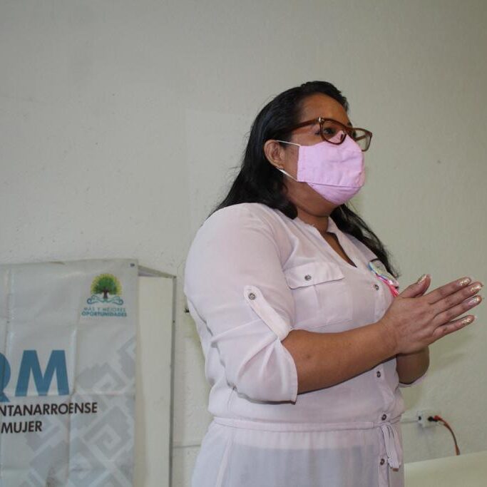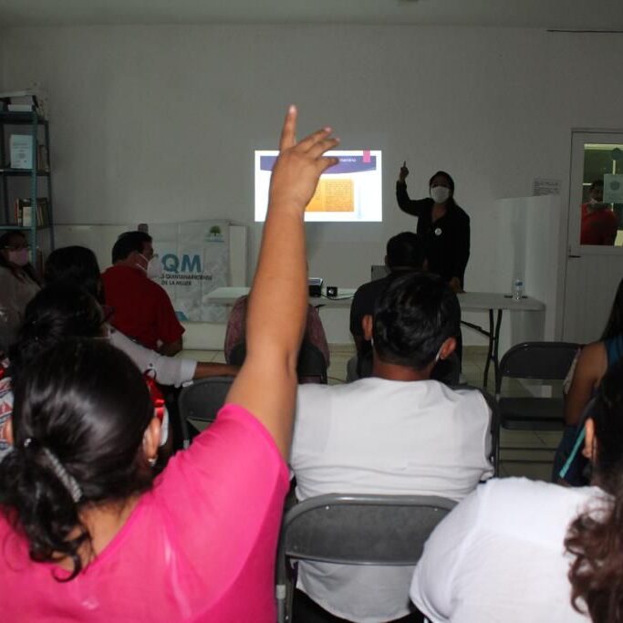 María del Carmen Velázquez Nájera, titular de dicha instancia, comentó que la conferencia que impartió Carolina Torres Saucedo, delegada del IQM en Benito Juárez, se realizó con líderes de colonia en Rancho Viejo con el fin de dar realce y reconocimiento a la inclusión de la mujer en el ámbito político.