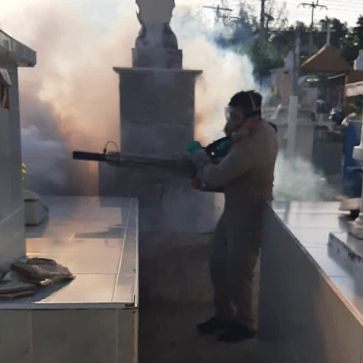 (Isla Mujeres, Quintana Roo a 29 de octubre de 2021).- Abonando al compromiso de cuidar a la gente en Isla Mujeres, el área de Vectores del gobierno del Estado emprendió un programa emergente de control larvario en los panteones municipales en vísperas del “Día de Muertos” que se esperan, las familias isleñas visiten a los campos santos.