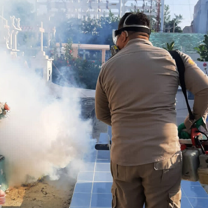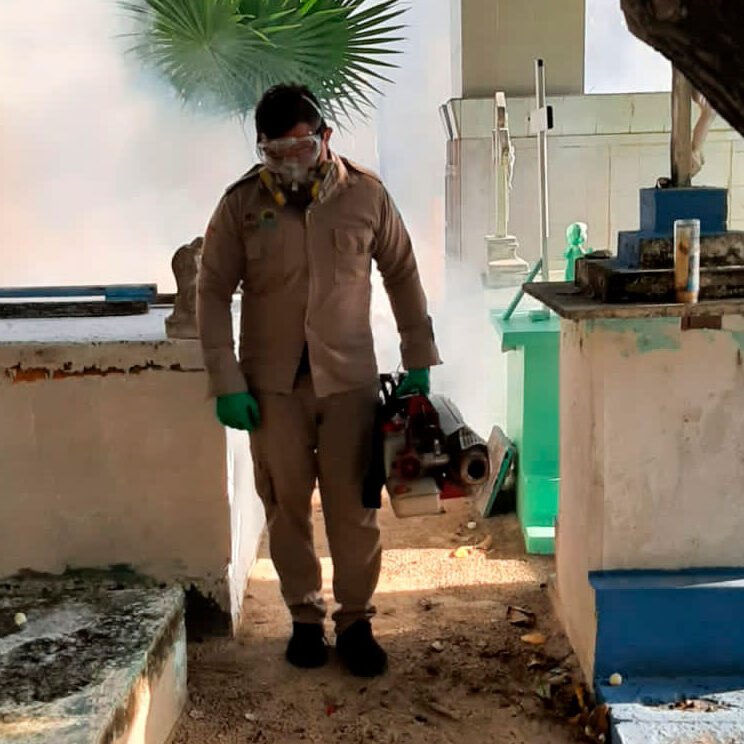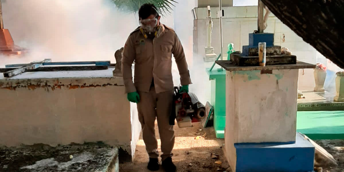 “Realizamos actividades de control larvario, eliminación de criaderos, abatización a las macetas que tuvieran agua, así como la termonebulización en los dos panteones”, comentó Gerardo Ventura Lugo Moguel, responsable del área de Vectores en Isla Mujeres.