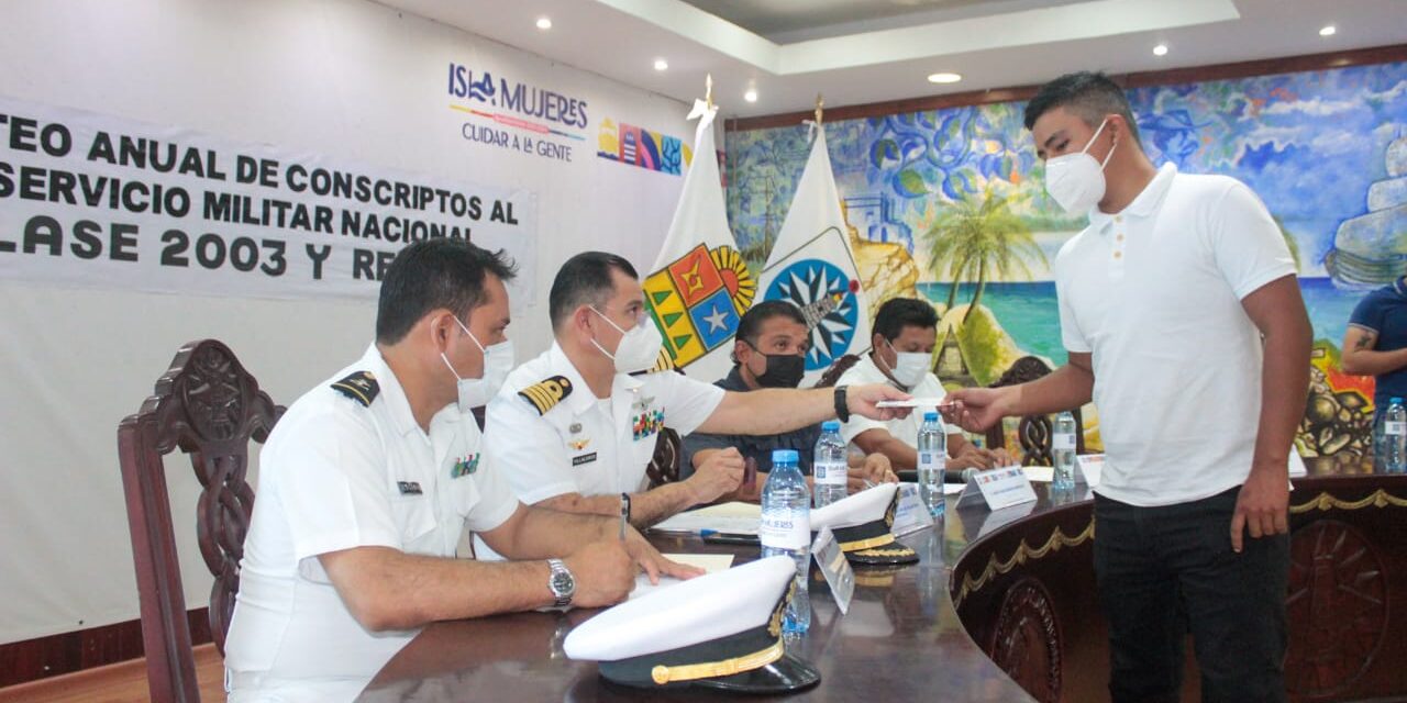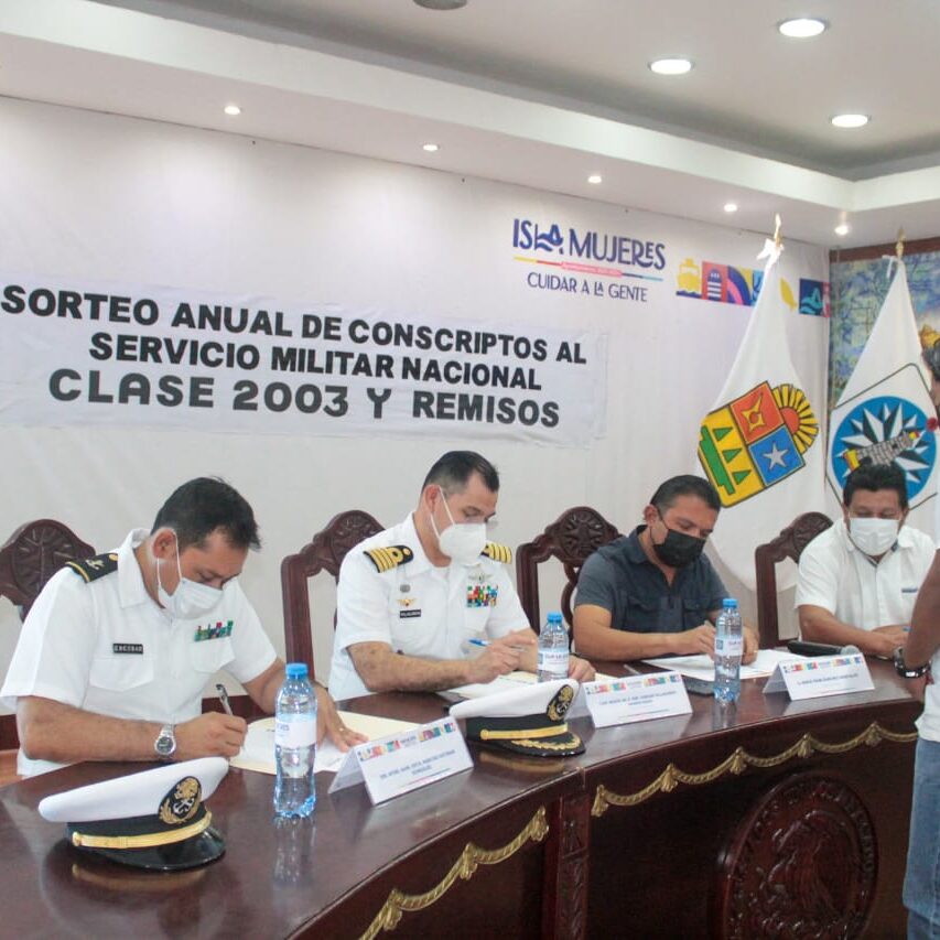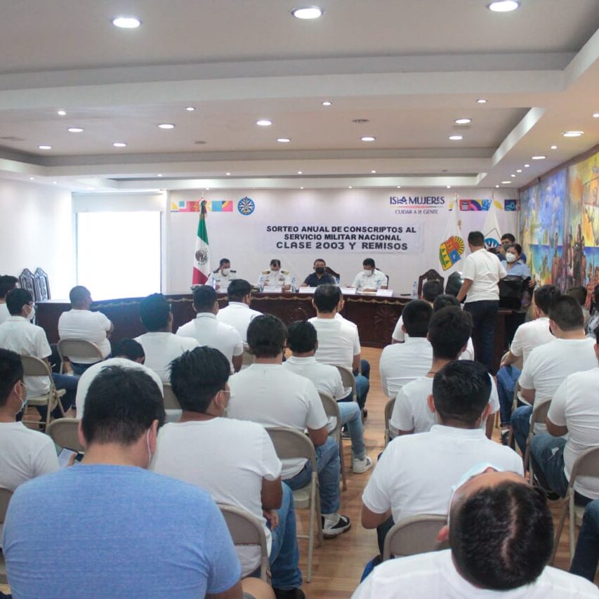 (Isla Mujeres, Quintana Roo a 28 de noviembre de 2021).- El Ayuntamiento de Isla Mujeres que encabeza Atenea Gómez Ricalde, en conjunto con la Secretaría de la Defensa Nacional (Sedena), realizó el sorteo de reclutamiento del Servicio Militar Nacional (SMN) clase 2003 y remisos, fomentando así, los valores morales, el respeto por los símbolos patrios y el sentimiento de unidad nacional.