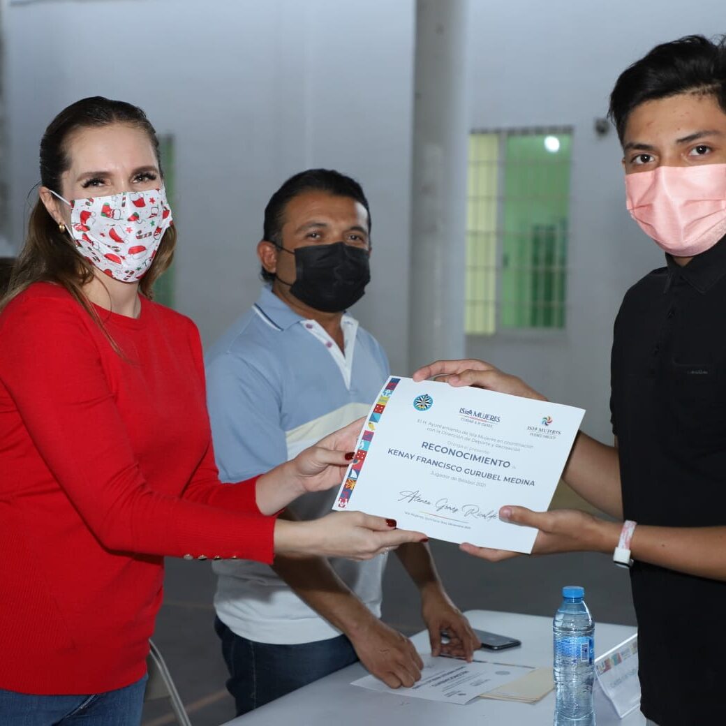 (Isla Mujeres, Quintana Roo a 11 de diciembre de 2021).- La presidente municipal Atenea Gómez Ricalde, reconoció al sector deportivo de Isla Mujeres, por todo el esfuerzo que día a día realizan para incentivar el deporte entre las nuevas generaciones, así como el trabajo que realizan a diario preparándose para representar al municipio en justas estatales, nacionales e incluso internacionales.