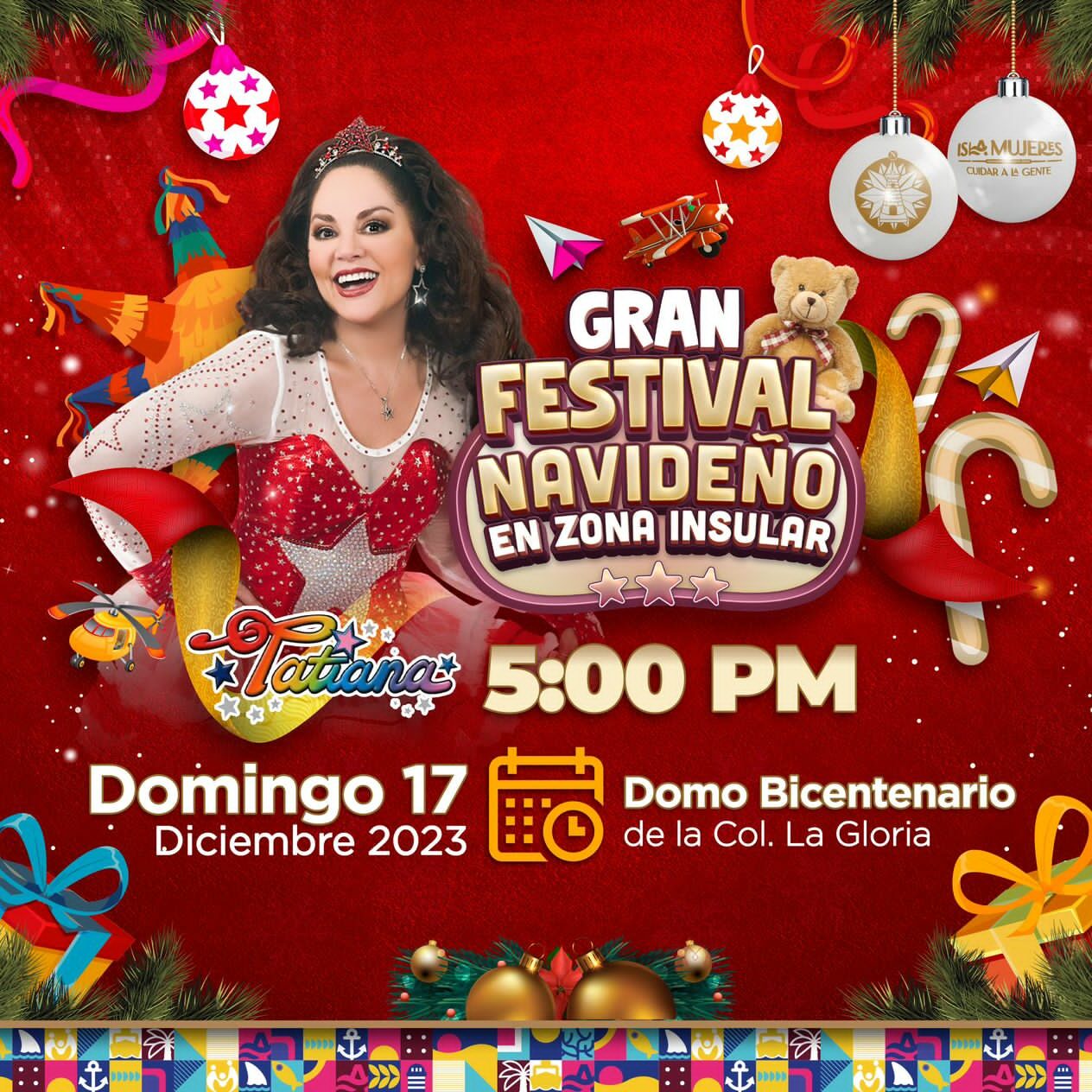sla Mujeres, Quintana Roo, a 13 de diciembre de 2023. En una muestra de compromiso con la infancia, la Presidenta Municipal de Isla Mujeres, Atenea Gómez Ricalde, extiende una cordial invitación a toda la comunidad para asistir al «Gran Festival Navideño en la Zona Insular», que contará con la destacada presentación de Tatiana como parte del programa especial «Navidad con la Gente».