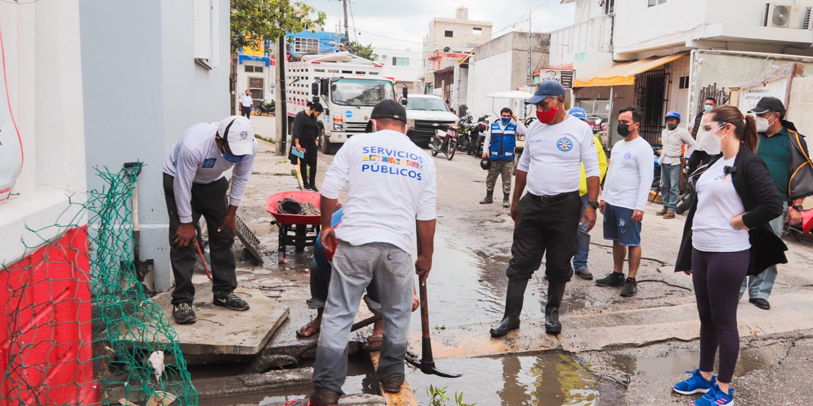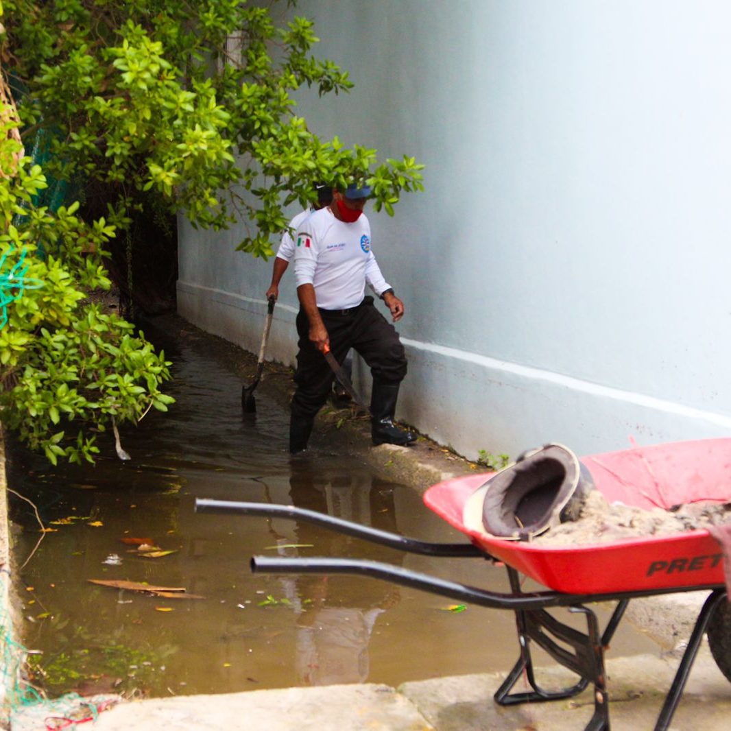 Aunado a estos trabajos emergentes para atender y evitar los encharcamientos en estas zonas, se realizaron tareas del programa “Cuidando Isla Mujeres” para contribuir en el cuidado de la buena imagen de la colonia “Salina Grande”, en el que se implementaron trabajos de barrido, chapeo y levantamiento de basura vegetal.